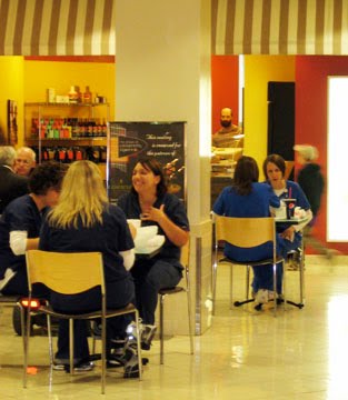 (Mayo nurses eating lunch in the Galleria)